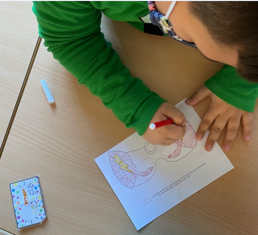 Els nens i les nenes de segon, van gaudir guarnint les seves màscares al taller de carnestoltes,  utilitzant diferents tècniques com el puntillisme.