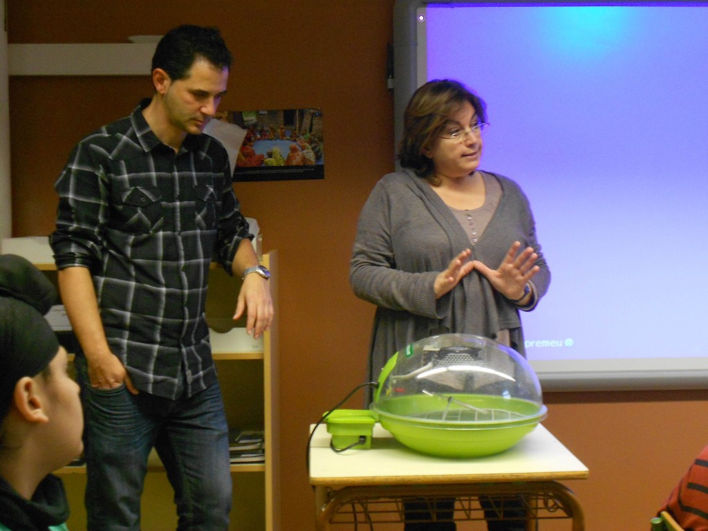 Teniu una sorpresa i resulta que era que teníem uns ous fecundats que d’allà sortirien uns pollets. Teniem 17 pollets que al cap de 21 dies encara no havien nascut i l’ou 3 s’havia trencat. El dia 22 o 23 o algo així els mestres van obrir 3 ous i resulta que 2 eren un embrió i un estava una mica format per néixer després el cap de 2 dies. Van trencar 4 ous i nomes eren un embrió estàvem molt desesperats i els mestres van treure la càmera web el dia següent resulta que van néixer 2 pollets: un va néixer a les sis de la matinada tot sol i l’altre a les vuit i mitja i el van haver d’ajudar les mestres a trencar el tel. El que havia nascut sol estava a la caseta i l’altre estava a la incubadora perquè estava molt dèbil.