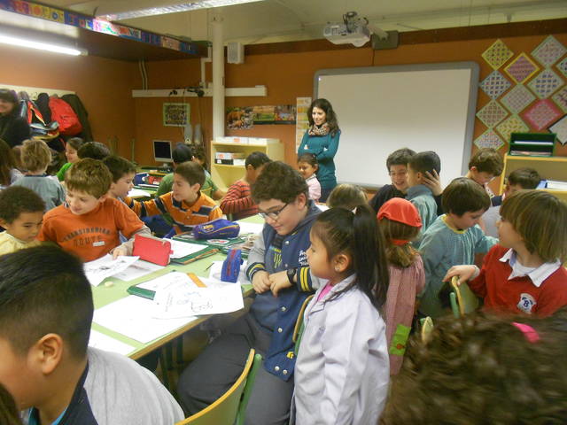 Aquest trimestre hem tingut una companyia animal, perquè a cinquè els mestres sempre porten ous d’una granja que coneixen. Els ous els posem en una incubadora on han de passar 21 dies; cada matí girem els ous per la cara on tenen dibuixat un sol i per la tarda els girem per la cara de la lluna (el sol i la lluna els hi dibuixem quan ens els porten). Vam tenir una avaria elèctrica que va afectar la incubadora durant més o menys un dia.