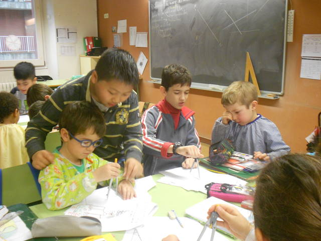 Ens ha agradat fer servir el compàs i a l’hora de plàstica hem fet una activitat amb aquesta eina. I n’hem escanejat una perquè veieu què vàrem fer.