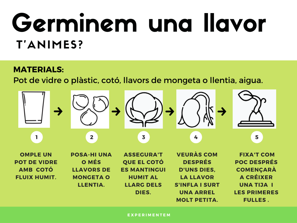 Us penjo l’explicació de com germinar una llavor, és important que ho aneu fent aquests dies perquè necessitarem la planta germinada per l’experiment que farem la setmana del 28 d’octubre.