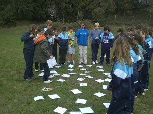 En aquesta foto els nens de cinquè, estan jugant al memory dels bolets amb la Topi, que és la nostra monitora. Aquest Memory era molt difícil per a mí. M’ha agradat molt la excursió a Mas Banyeres.