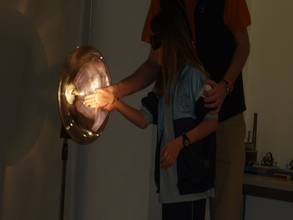 Quan vam arribar, ens van donar una full per contestar unes preguntes que tenien relació amb El pèndul de Foucault:de quin material està fet, què observes de l’experiment, què passa i fes-ne un dibuix. Va ser molt interessant i instructiu.