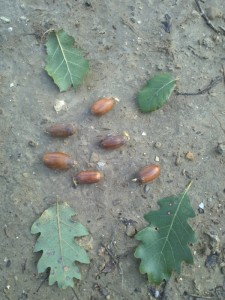 En aquesta fotografia surten uns aglans i algunes fulles que vam recollir pel camí, Ana Belen la nostra monitora ens va explicar que les fulles aquelles  eren d´un roure que havíem passat. A mi em va agradar la sortida a Mas Banyeres, i em va semblar fantàstica.