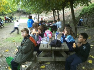 A l’excursió estàvem menjant entrepans ,jo el Jordi i les nenes. Parlem sobre que anàvem a fer, perquè estàvem nerviosos, i els del costat tots el nens deien que a mi m’agrada la Justina i al Jordi la Guiovanna, però els nens són molt bromistes, per això el Jordi i jo dèiem que no ens agraden.
