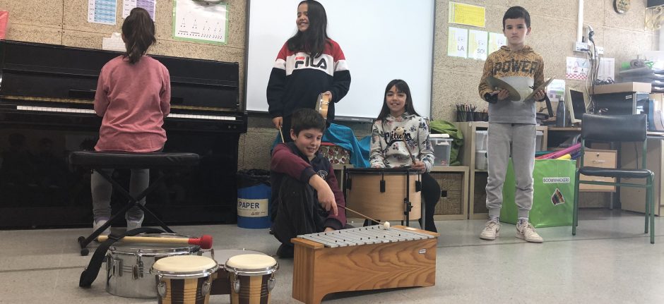 Els dijous a la tarda tenim una estona per assajar, per fer música plegats tot aprenent a tocar el flabiol i el tamborí que vem construir nosaltres mateixos l’any passat.