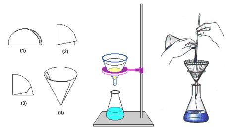 - Filtració: es fa servir per separar sòlids de mida petita suspesos en un líquid. És convenient deixar reposar la mescla per tal que les partícules mes denses es dipositin al fons del recipient. En fer passar el líquid per un filtre, les partícules sòlides hi queden retingudes.