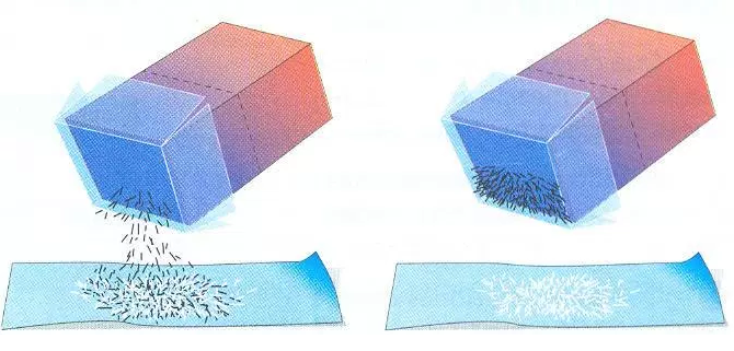 | Principals mètodes de separació de mescles heterogènies: SEPARACIÓ MAGNÈTICA. En aquest cas, les llimadures de ferro són separades de la sal. |