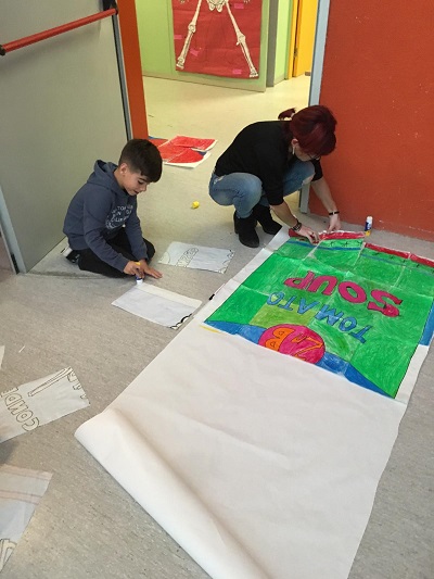 La comissió artística de l’escola va proposar decorar els espais del Puigventós amb pintures, colors, paletes i barreges per crear una atmosfera relacionada amb l’eix transversal.
