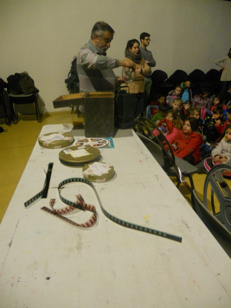 En aquest espai d’Olesa ens han ensenyat com es feia originalment el cine. Hem pogut veure i tocar diapositives i pel·lícula de cinema. També ens han ensenyat dues de les càmeres de projecció que conserven al casal.