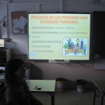 El taller va constar de dues parts, una part teòrica sobre el tipus i causes de les discapacitats, les barreres a l’accessibilitat i l’esport adaptat.