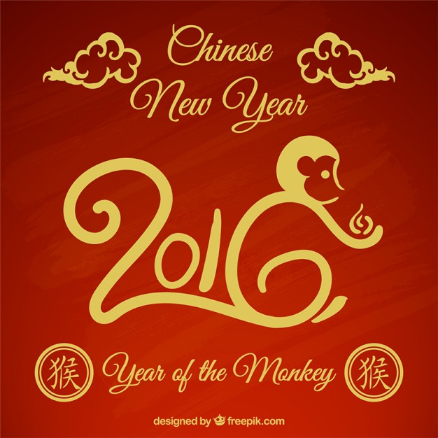 chinese-new-year-2016-red-background_23-2147534046This Chinese New Year is on the 8th February, and it is the year of the MONKEY,  according to the Chinese 12-year animal zodiac cycle.