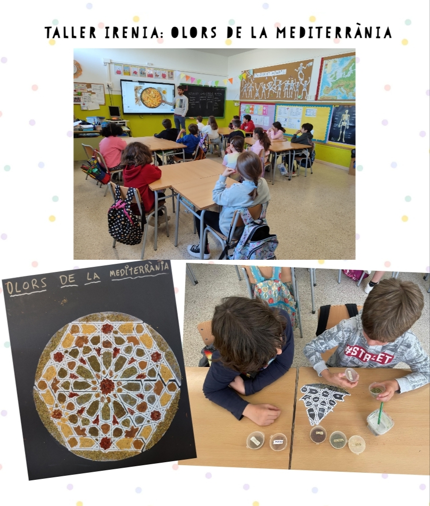 En aquest taller hem après un munt de coses i hem fet una manualitat amb les olors de la mediterrània: un mandala de colors amb les diferents espècies.