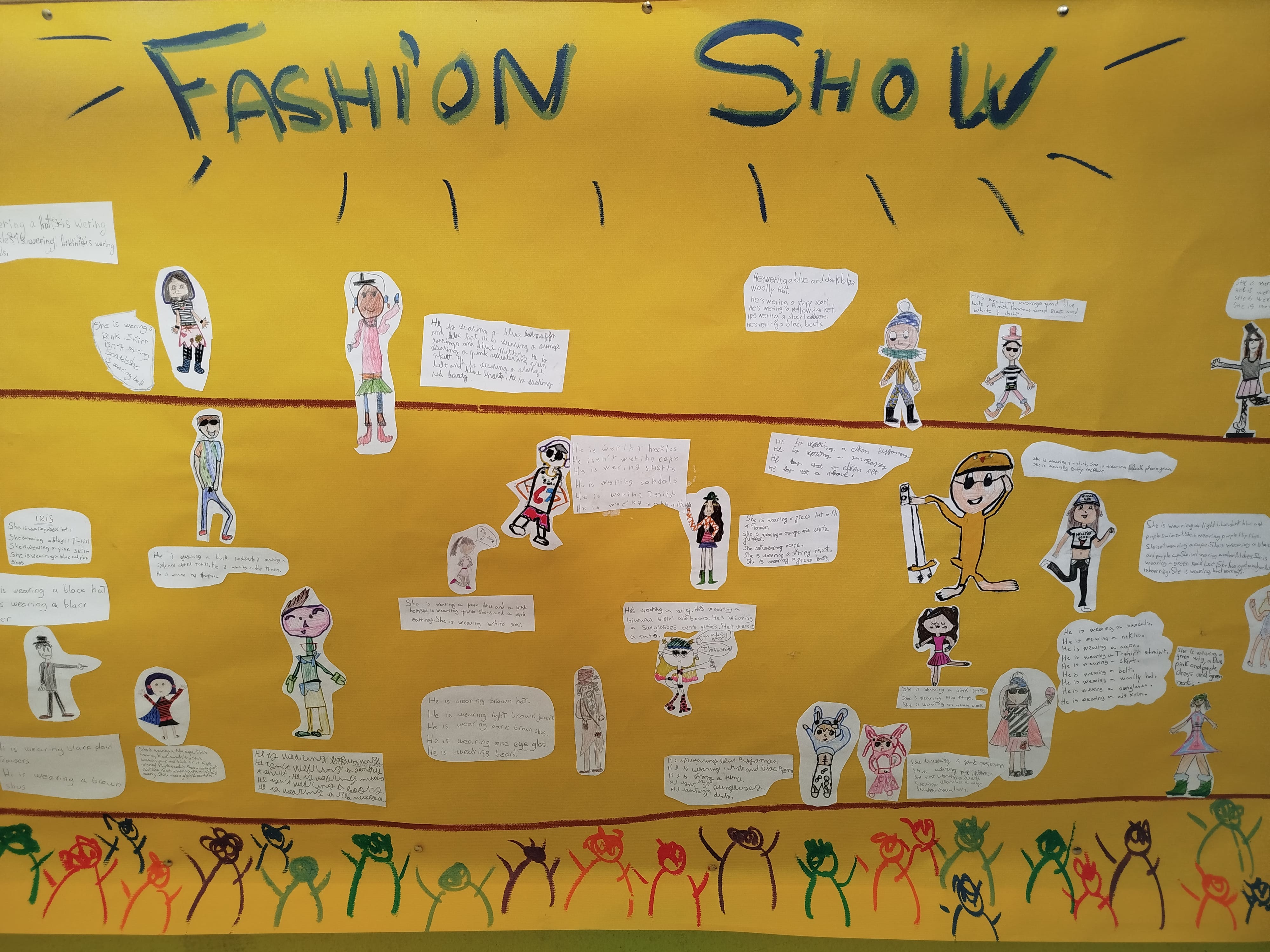A 3r hem treballat la roba i els complements d’una manera molt divertida! Hem cantat, hem desfilat com autèntics supermodels i hem après a descriure com anem vestits. Per practicar encara més, hem creat un pòster amb persones desfilant i les seves descripcions. Ens ha quedat genial!