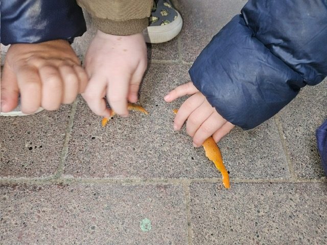 Els nens i nenes d’I3 van descobrir un misteriós camí fet de peles de mandarina. Intrigats i emocionats, el van seguir pas a pas… Fins que els va conduir al bosc de l’escola.
