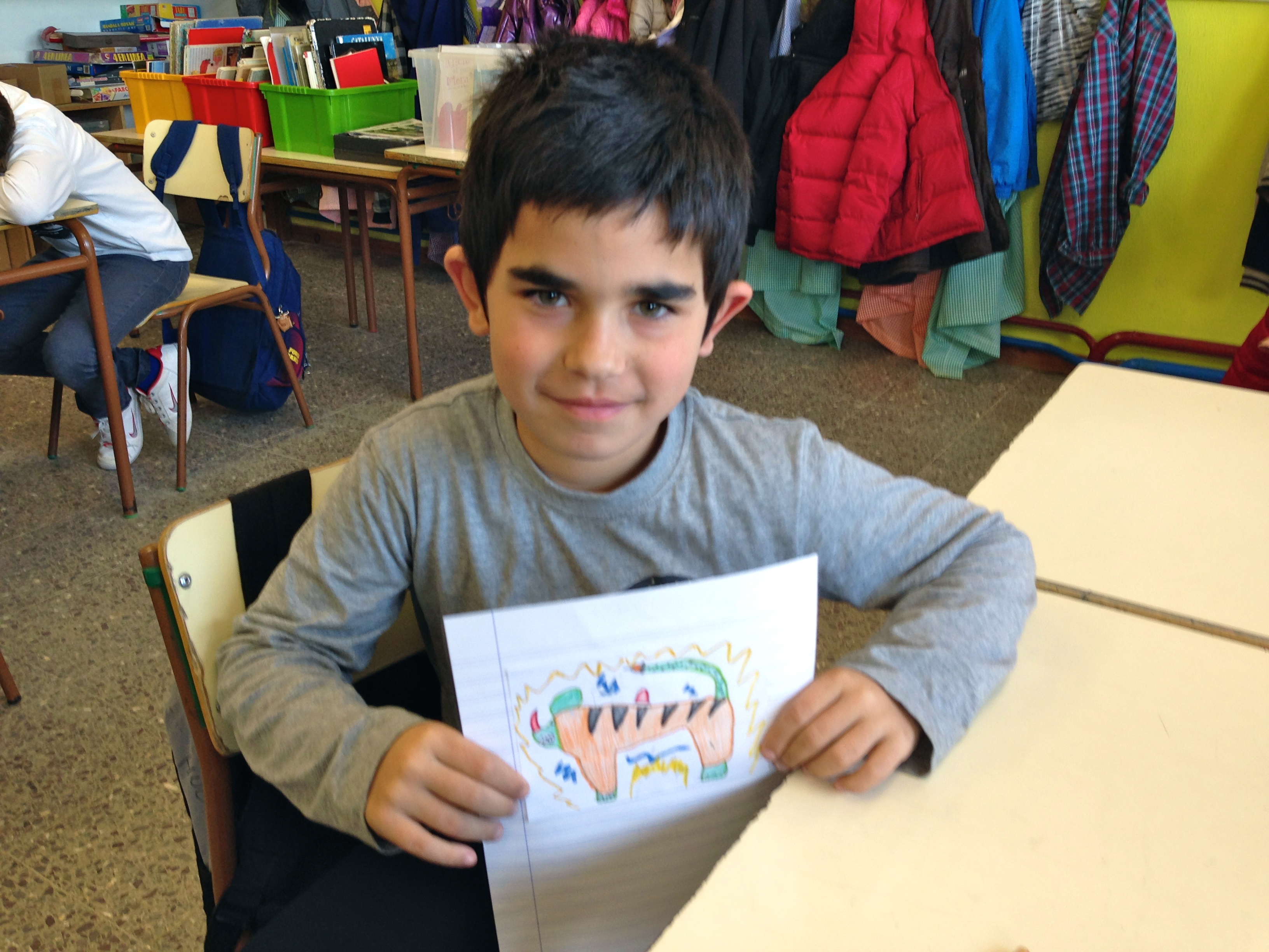 – Peró, no tenia aletes… Tenia ales! Quasi com les d’una àliga. També tenia quatre potes ben àgils i petites, quan el vaig tocar, la seva pell era suau però a la vegada llefiscosa, els seus ulls eren grossos i atents a qualsevol perill, d’orelles no en tenia però ho sentia tot, la seva dificultat és que no sap distingir els crits de quan els nens juguen de quan estan en perill.En el fons és amable, però quan sent un crit ho deixa tot i se’n va a rescatar a qualsevol nen: