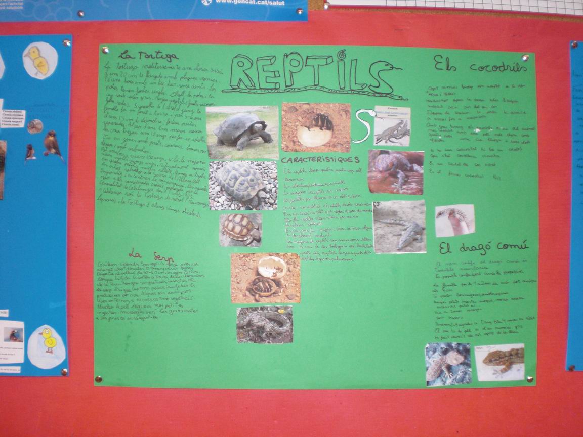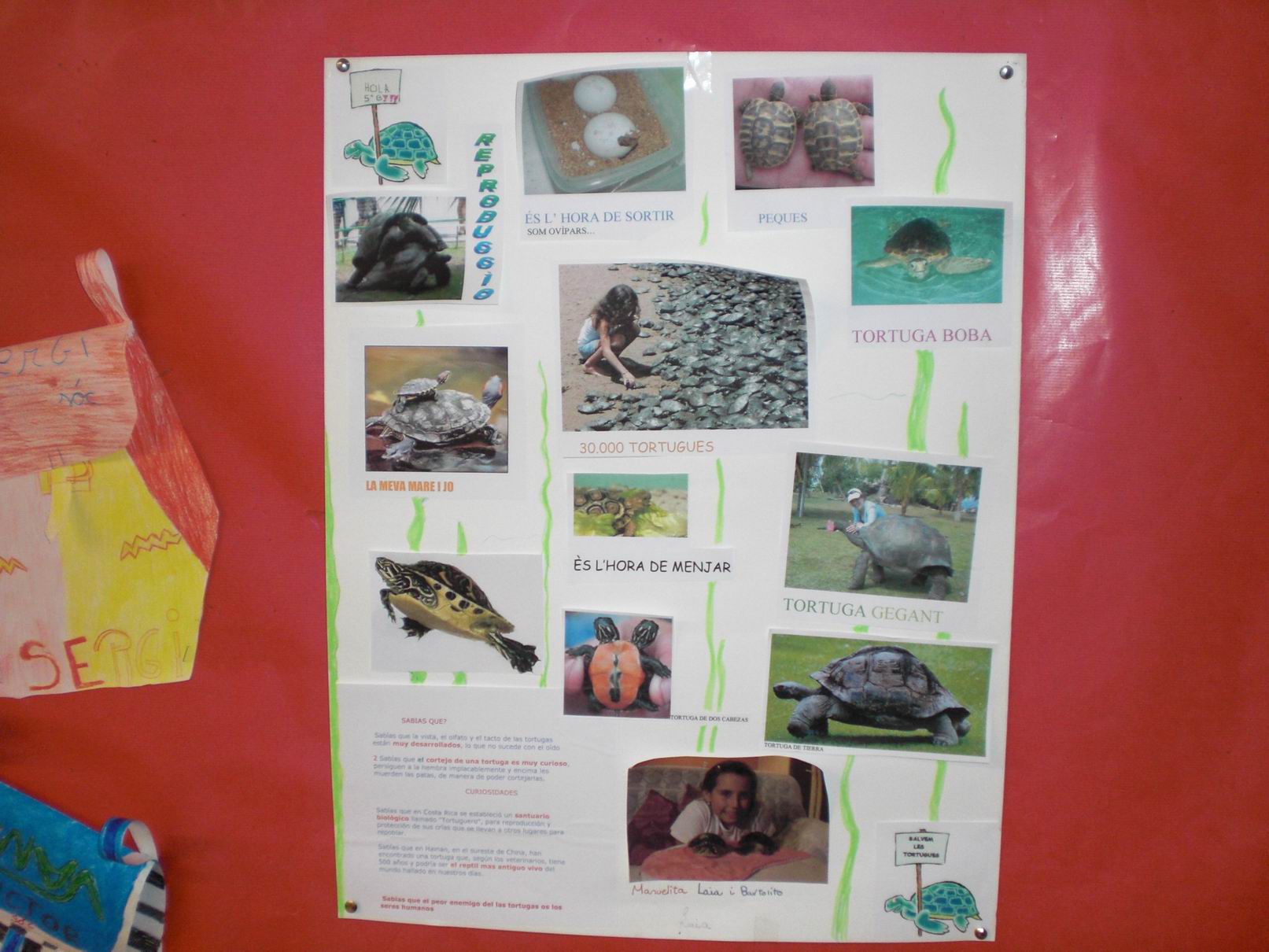 Aquest treball ho van fer entre Mar i Laia que ens van portar a classe unes tortugues…. i ens van explicar molt bé per mitjà d´un mural i una explicació a la pissarra, les diferents tipus de tortugues, la seva alimentació,etc……