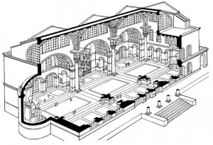 Era un edifici rectangular amb un costat curt semicircular. Al centre es construïa una balustrada que dividia l’edifici pel centre (spina). Les grades estaven recolzades en