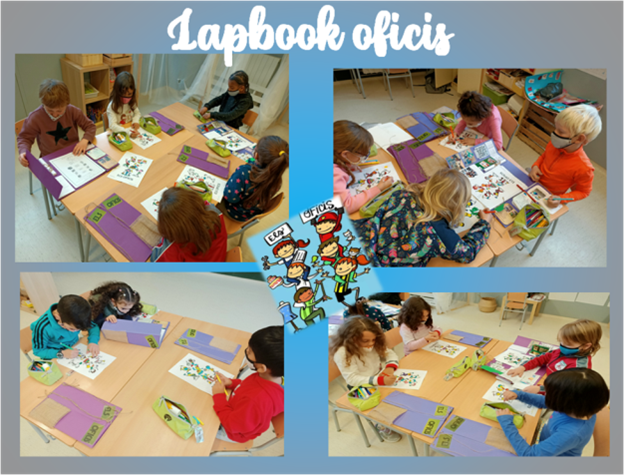 Aquest primer trimestre hem treballat els oficis. Cada nen i nena ha triat el seu ofici, ha portat informació de casa i ha exposat el seu tema. Hem treballat tots els oficis, els sectors als que pertanyen, la comercialització, els sectors predominants a la classe (oficis de la família i gràfica de barres); hem situat alguns oficis en el mapa del poble i hem après a interpretat un plànol. Fins i tot, també hi ha hagut algun experiment vinculat a l’exposició. Hem intentat recopilar tota la informació i les activitats realitzades en un lapbook. Felicitats Romaní heu treballat moltíssim!
