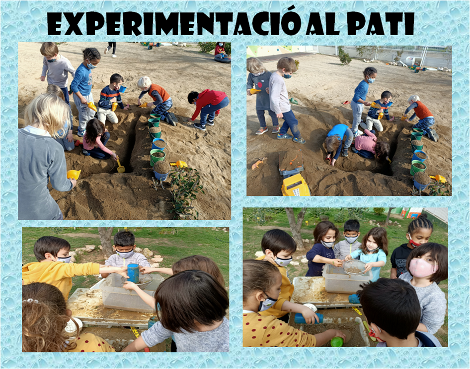 Aigua, sorra,barreges, tresors, túnels secrets, troballes màgiques, fòssils, pedres precioses, petits insectes, la floració dels arbres, el creixement de les hortalisses plantades, …i moltes altres coses que descobrim al nostre pati. Mireu, mireu!