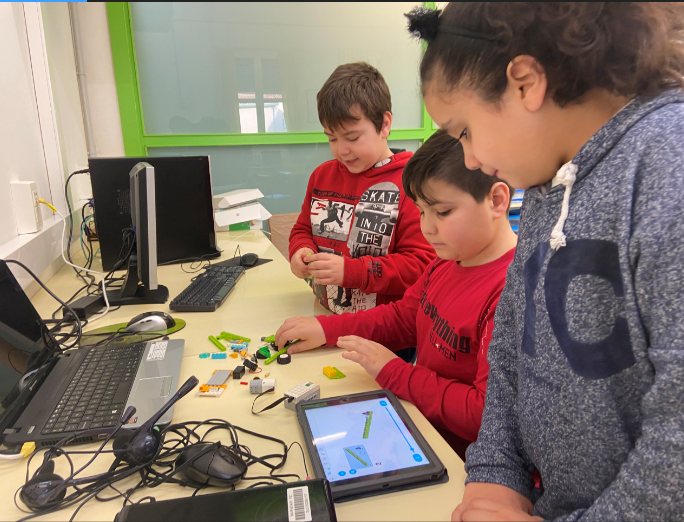 A les classes de robótica continuem realitzant les nostres ciutats sostenibles. Els nens i les nenes de 4t continúen dialogant i creant espais metropolitans que aprofiten les energies renovables a partir de material Lego.