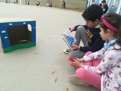 Aquest any les nenes i els nens de 3r hem compartit una sèrie d’històries amb els companys i companyes de 1r. Hem estat llegint al pati, a la biblioteca, al passadís… allà on ens sentíem més cómodes.
