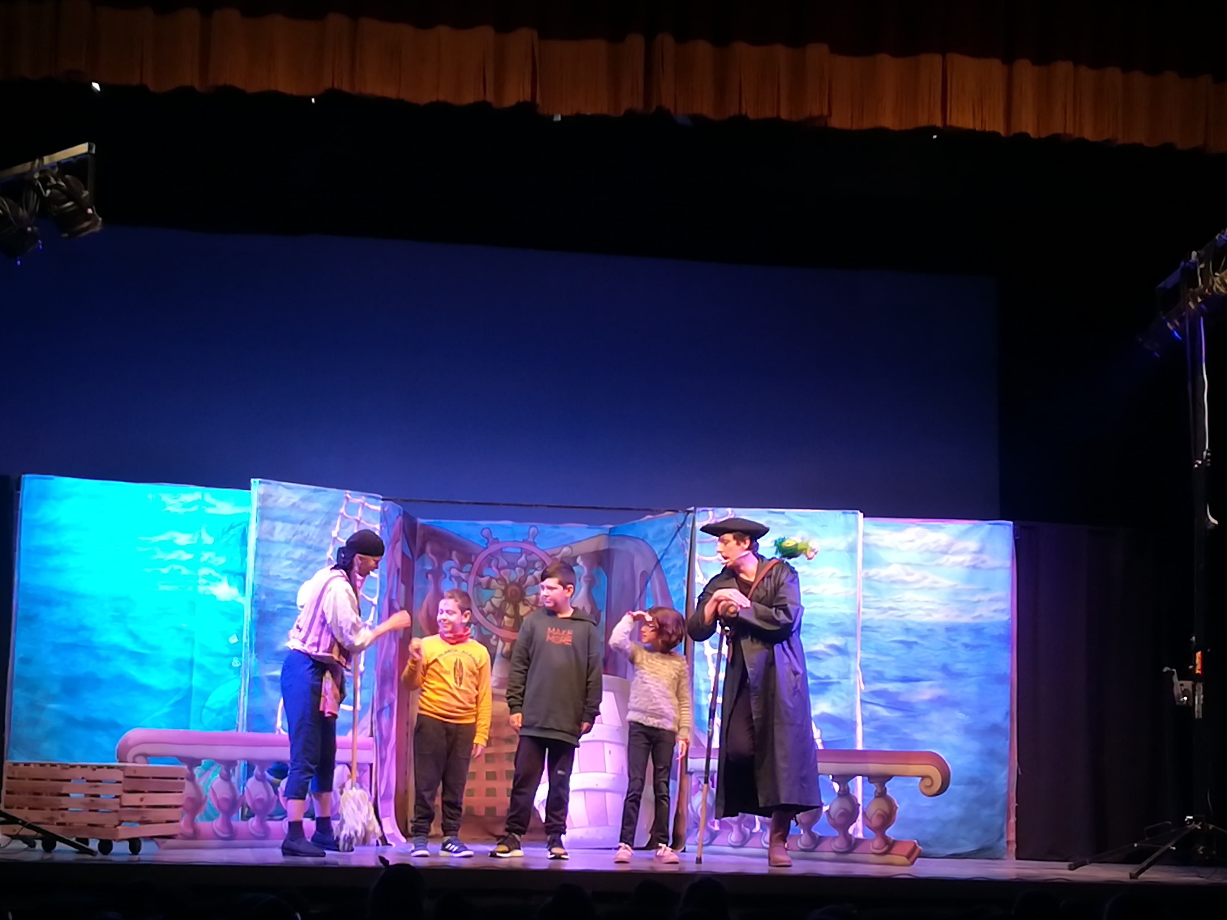 Avui les nenes i nens de l’escola hem anat al Círcol Catòlic de Vilanova a veure una obra de teatre anomenada “The treasure island”. Sí, sí, com el seu títol indica, ens han contat aquesta emocionant història en anglès.