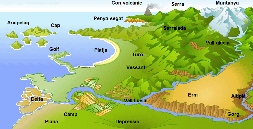 Les nenes i els nens de 3r estem estudiant el relleu i els tipus de paisatgesJa sabem que n’hi ha de tres tipus: EL PAISATGE DE MUNTANYA, EL DE PLANA I EL DE COSTA. I que aquests tipus de paisatges poden haver sofert canvis o modificacions a causa de la NATURA o dels HUMANS.