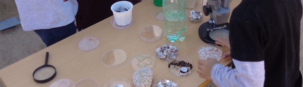 Els residus que els infants han desenterrat es veuen de ben d’aprop amb una lupa, una lupa d’augment i una lupa binocular. Tres eines que no s’utilitzen de forma habitual per a observar-los. Els microorganismes i els bacteris no són capaços de degradar molts dels residus que els humans considerem com a assimilables a urbans.