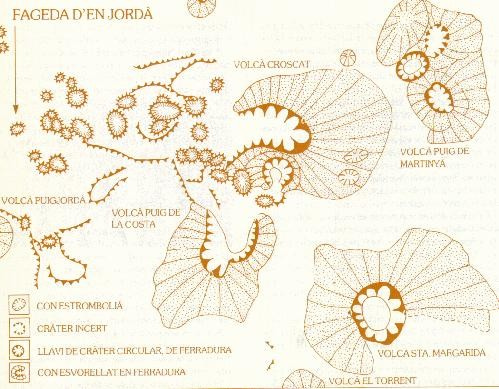 -Sta. Margarida: té 500 m. de diàmetre a la base, amb un cràter de 70 m. de profunditat.