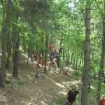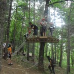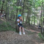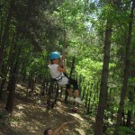 Ja ens hem llevat, esmorzat i … ara fem les activitats del matí: TIROLINA, MUNTAR A CAVALL I TIR AMB ARC.