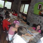 Els grans i els mitjans després de pujar a cavall hem anat a fer tirolina. L’alçada era considerable però teniu uns fills/es molt valents… A la tarda han fet un taller per fer un marc de fotos. Ara fa un xàfec