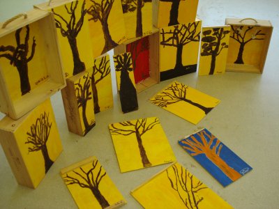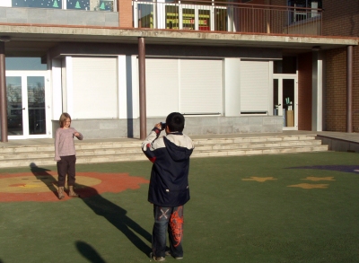 En la segona sessió ens va proposar als nens i nenes de 3r i 4t realitzar una caixa fosca amb la que sortiriem a l’exterior a realitzar les primeres fotografies. Amb els tutors les varem pintar i posteriorment i en grupets de 5 sortiem a l’exterior per realitzar la foto. Això ho varem poder fer pocs dies, ja que la boira i el fred van arribar a Alpicat i ens faltava llum per poder captar les imatges. Degut a això, s’ha decidit deixar de fer aquesta pràctica en aquests moments i esperar a que arribi el bon temps. En la tercera sessió, vam carregar una càmara compacta analògica amb un rodet de blanc i negre i vam sortir als voltant del parc del graó a realitzar un parell de fotografies cadascú. Això sí, havíem de vigilar amb la llum del sol no fos que ens veles la imatge. I amb aquestes que va arribar el nadal i el taller es va parar.