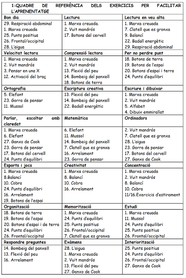 Aquí tenim les tècniques de la gimnàsia cerebral com a suport al posicionament entés com a preparació de les persones per a jugar