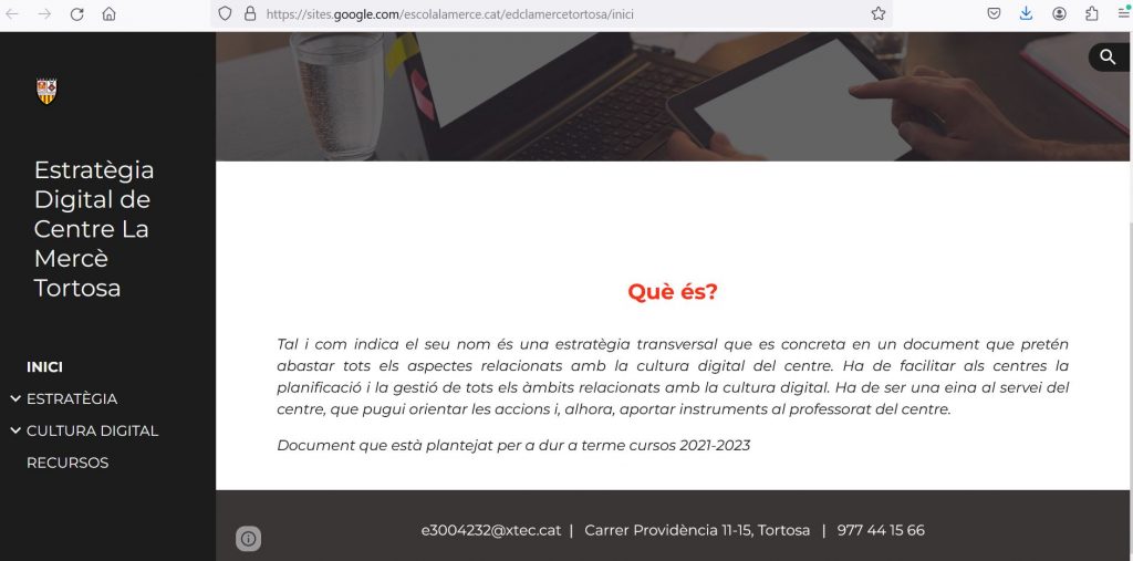 Per visualitzar l’Estratègia Digital de Centre de La Mercè cal clickar el següent link: https://sites.google.com/escolalamerce.cat/edclamercetortosa/inici