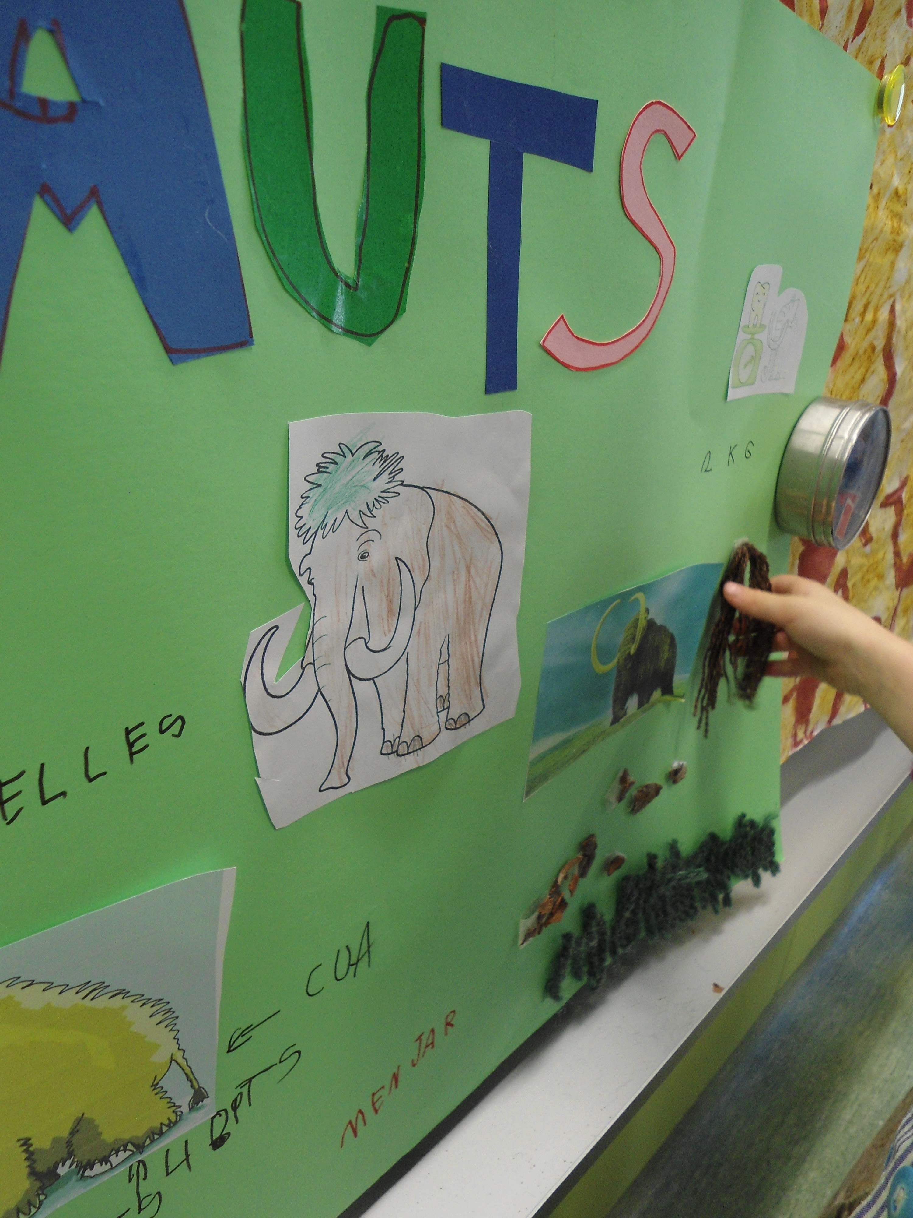 Cada infant fa una pluja d’idees sobre el què sap d’allò que es presenta amb la imatge, en aquest cas, els fóssils i els dolmens.
