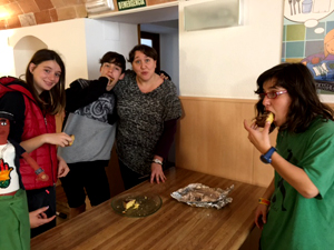Avui hem visitat la Cristina i la Carme de Secretaria per ensenyar les maquetes dels nostres gegants. Els hi hem explicat el nostre projecte i ens han convidat a menjar “mona” de Pasqua. Moltes gràcies Cristina i Carme.