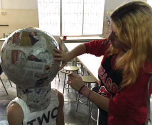 Avui hem començat la construcció dels capgrossos de l’escola. La Neus i en Joan han començat a retallar els cartrons que seran el coll i la base dels capgrossos. Després hem inflat dos globus gegants de color blau per enganxar-los als colls. A continuació hem començat a aplicar la cola i el paper per començar a fer gruix. Aquí teniu un recull d’imatges.