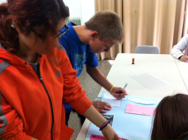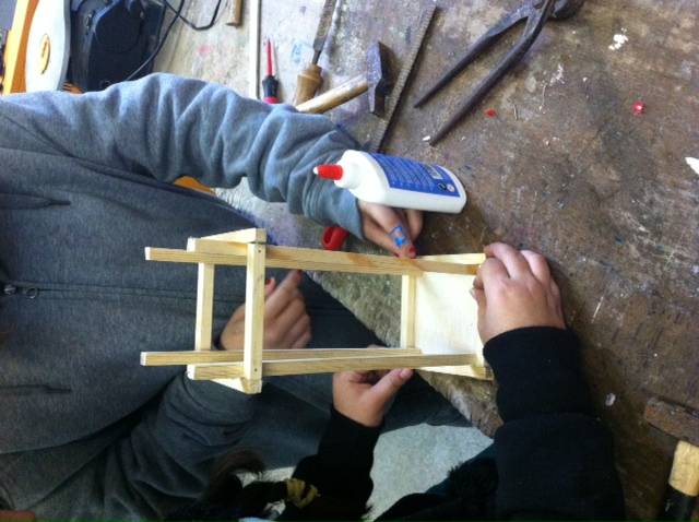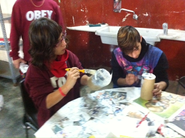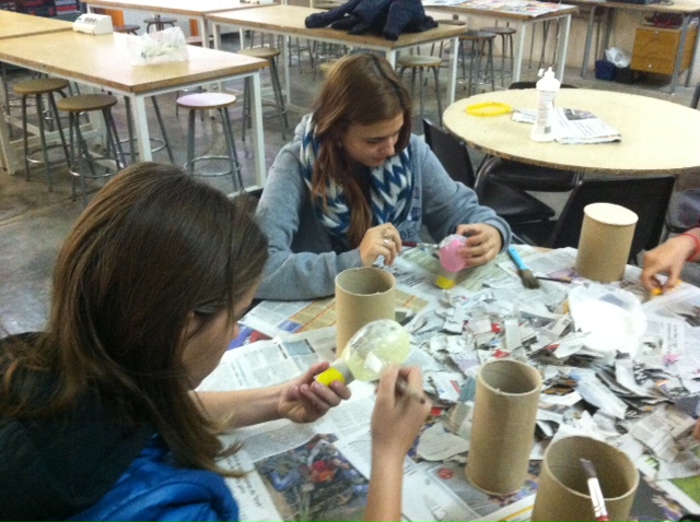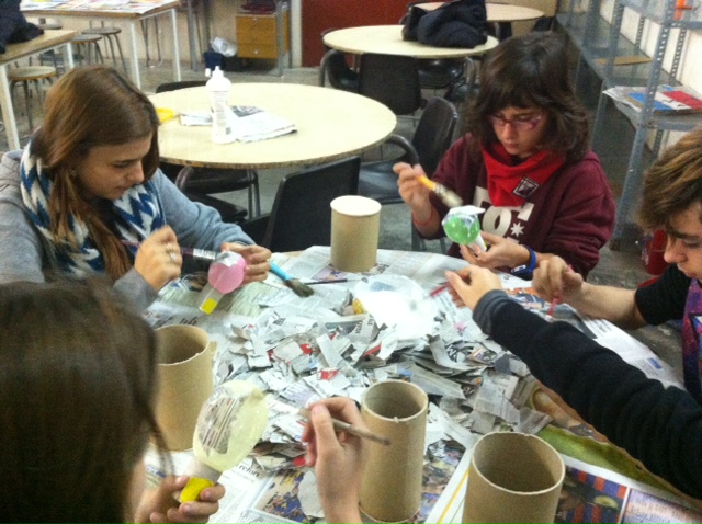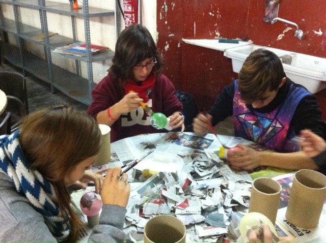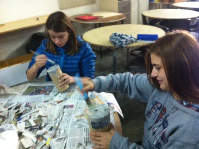 Treballant al taller. Els nostres minigegants ja comencen a agafar forma.