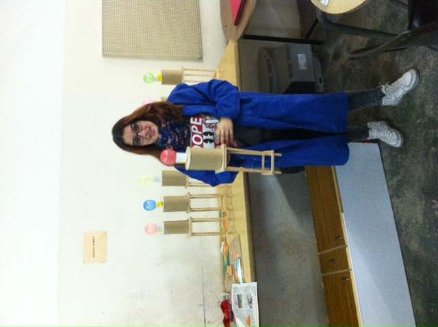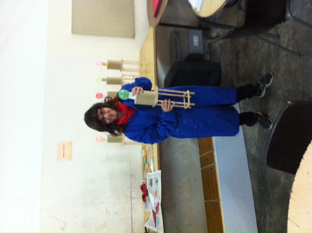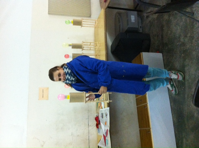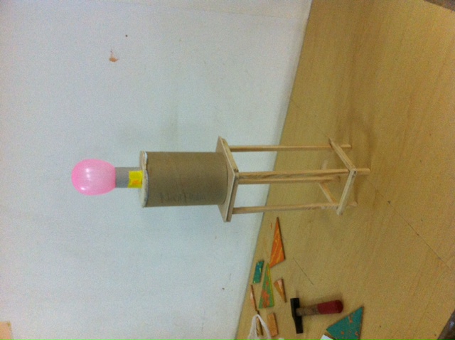 Anem al taller a començar a fer les maquetes. Per fer l’esquelet dels nostres “minigegants” utilitzem fusta, rotllo de cartró, globus, paper i cola.