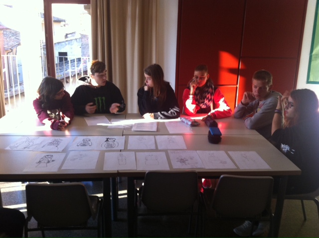 Discutim els nostres dissenys amb els companys. Hem dibuixat una parella de gegants cadascun de nosaltres i n’hem comentat les seves característiques i les seves històries. A les imatges podem veure algun dels esbossos fets.