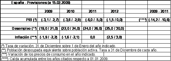 ¿Qué tendencias marca la economía española?. Un acelerado deslizamiento a la baja del PIB con un límite del -20%, un fuerte aumento del desempleo del factor trabajo con una tasa límite del 30%, y una progresiva disminución del nivel de precios hasta alcanzar una caída de más del 10%. Es decir, una situación en la que progresivamente se irá dibujando una depresión deflacionaria cuyo auténtico punto de arranque será el año 2010. Evidentemente, España no se hallará sola en ese recorrido, aunque el derrumbe será aquí percibido antes que en otras economías y durante la crisis alcanzará una mayor intensidad.