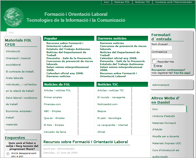 Al lloc web de l’Institut Obert de Catalunya podem accedir-hi als recursos del cicle formatiu