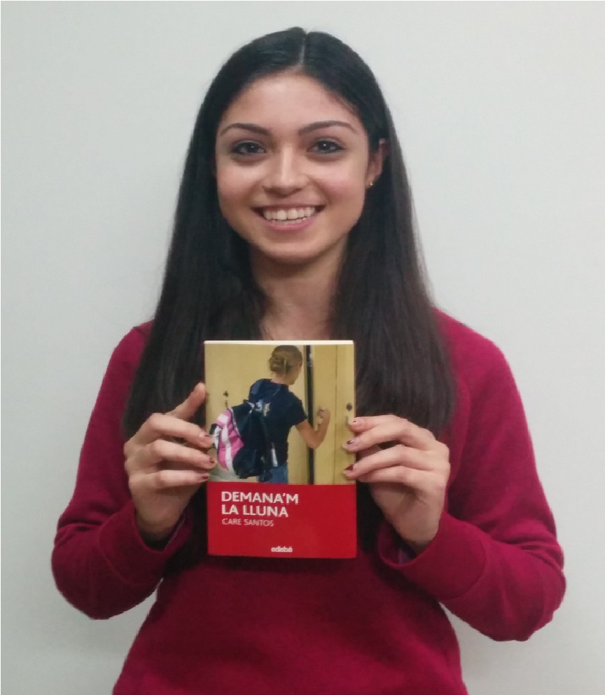Demana’m la lluna, de Care Santos. L’he triat per un motiu acadèmic. Espero posar-me a la pell de qui pateix bulling. Em servirà pel portfoli.