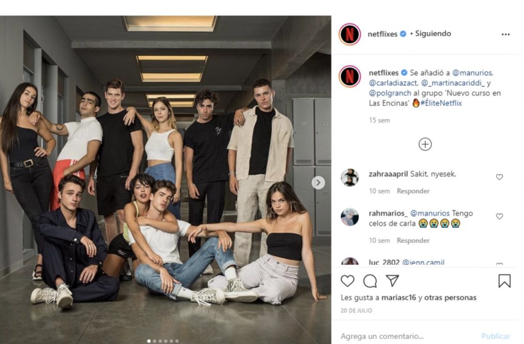 Fotografia promocional del compte oficial de Netflix. Publiciten l’estrena de la nova temporada d’una de les seves sèries més famoses actualment, Élite.