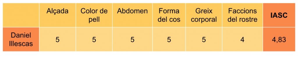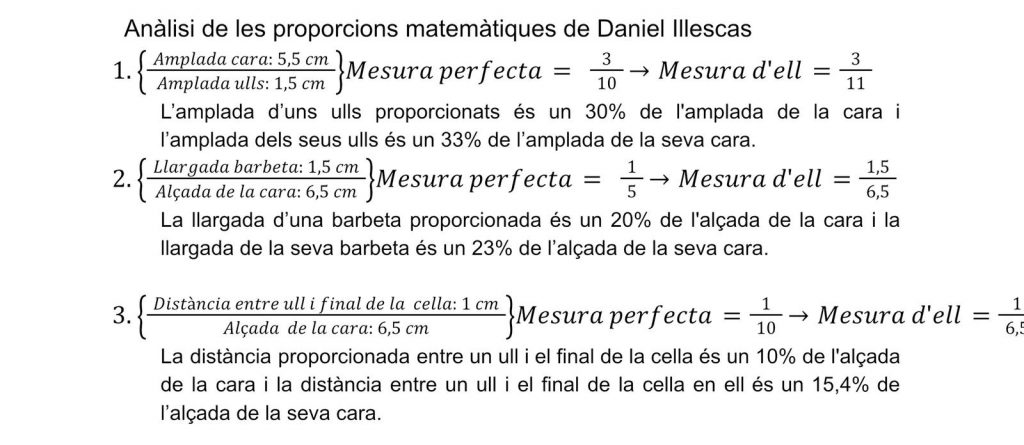 Aquest resultat demostra que físicament, Daniel illescas no s’apropa a la xifra de la Proporció Àuria, el que dicta que el seu cos no segueix matemàticament una harmonia i una perfecció respecte a la bellesa matemàticament establerta.