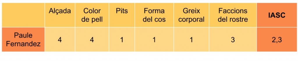 La nostra hipòtesi es confirma amb l’anàlisi de Paule. Compleix els criteris d’una influencer no acceptada amb un gran nombre de publicacions d’acció social, acompanyades d’un fort activisme a xarxes socials. El seu IASC baix ens confirma que és una persona amb un cos no acceptat per la societat. Referent a les proporcions matemàtiques facials, algunes són properes a la perfecció i altres són molt llunyanes a ella. El seu cos, matemàticament, no s’apropa al número auri, el que recolza la nostra hipòtesi que diu que la bellesa subjectiva d’una societat està relacionada amb una bellesa proporcional i numèrica.