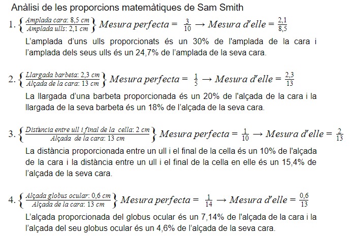 Sam Smith, en diversos criteris s’allunya dels percentatges de la proporció àuria. I en referència a la proporció matemàtica del cos el seu 0,272 dista molt del número auri.
