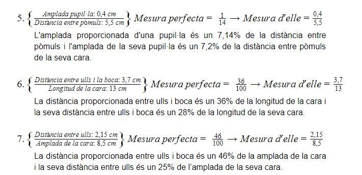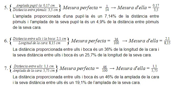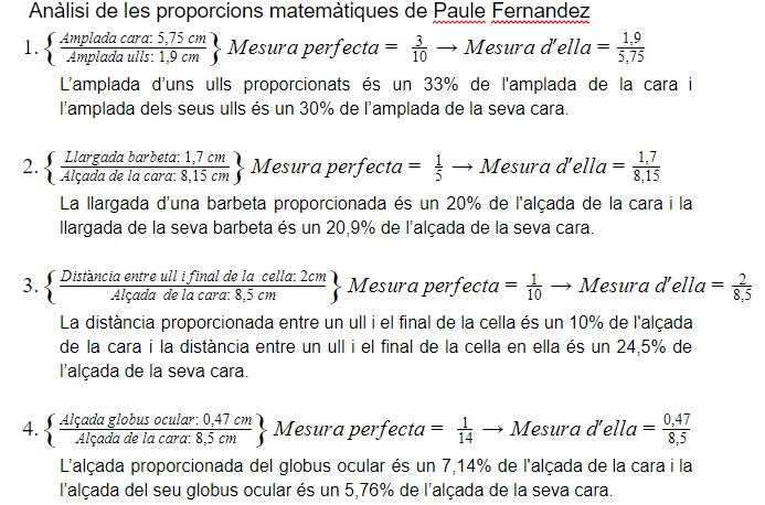 La màscara no encaixa pràcticament en cap part de la seva cara. La màscara està disposada amb el nas com a punt d’origen, per tant encaixa tan en forma com en posició. La resta de les faccions com les celles, els ulls, la boca i la forma de la cara no coincideixen amb la màscara. Els llavis coincideixen en posició però no en forma. En conclusió, la cara de Paule s’allunya prou de l’harmonia matemàtica facial.
