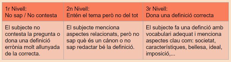 Per fer l’anàlisi d’aquesta resposta oberta, hem creat uns criteris de correcció, classificant les respostes segons tres graus de coneixement respecte a la resposta correcta.